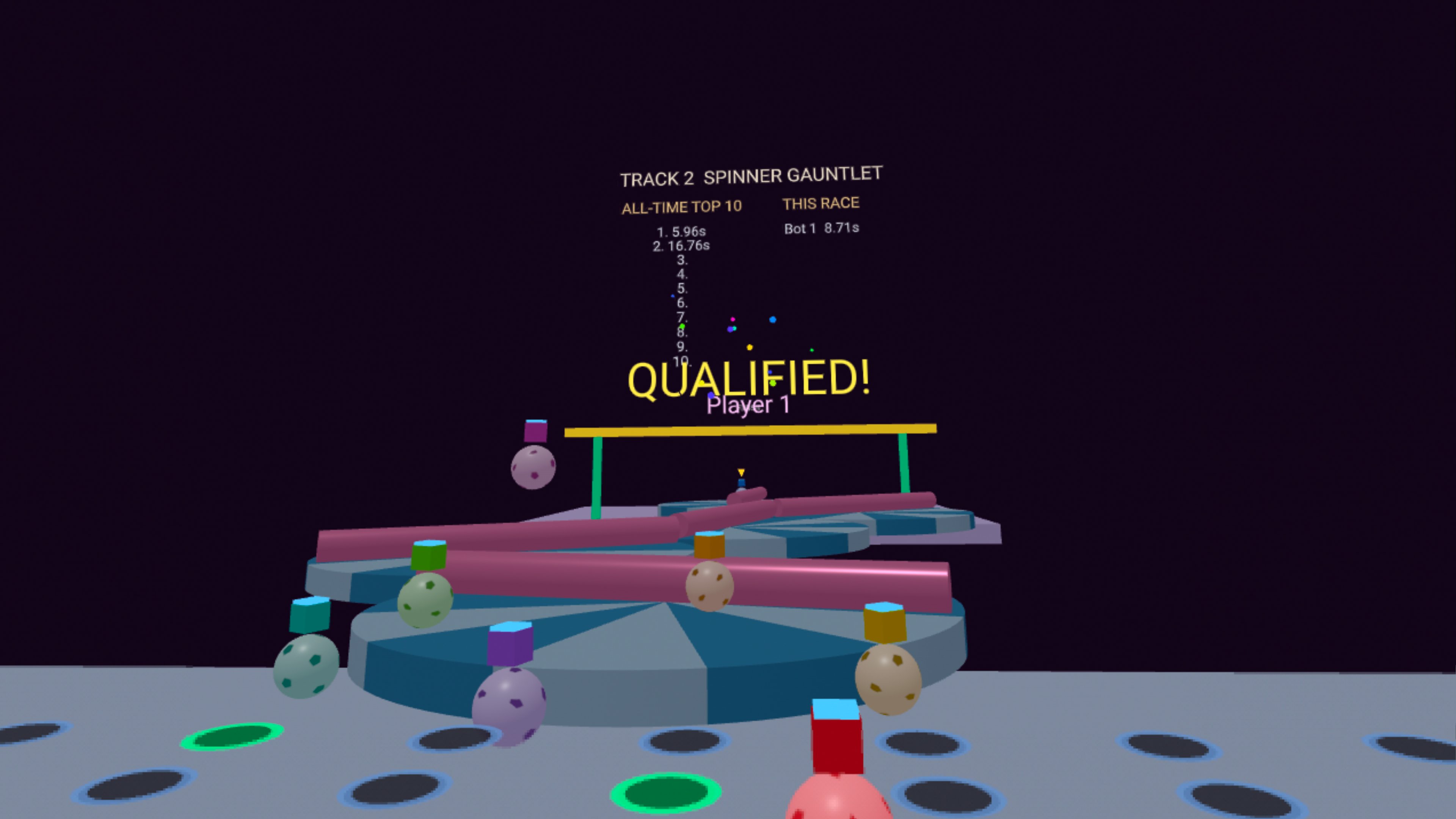 VR Knockout is a light, Fall Guys–inspired obstacle course race built for WebXR. Challenge in three courses, dodge rolling rocks, spinners, and moving platforms, and be among the first across the finish line to qualify.